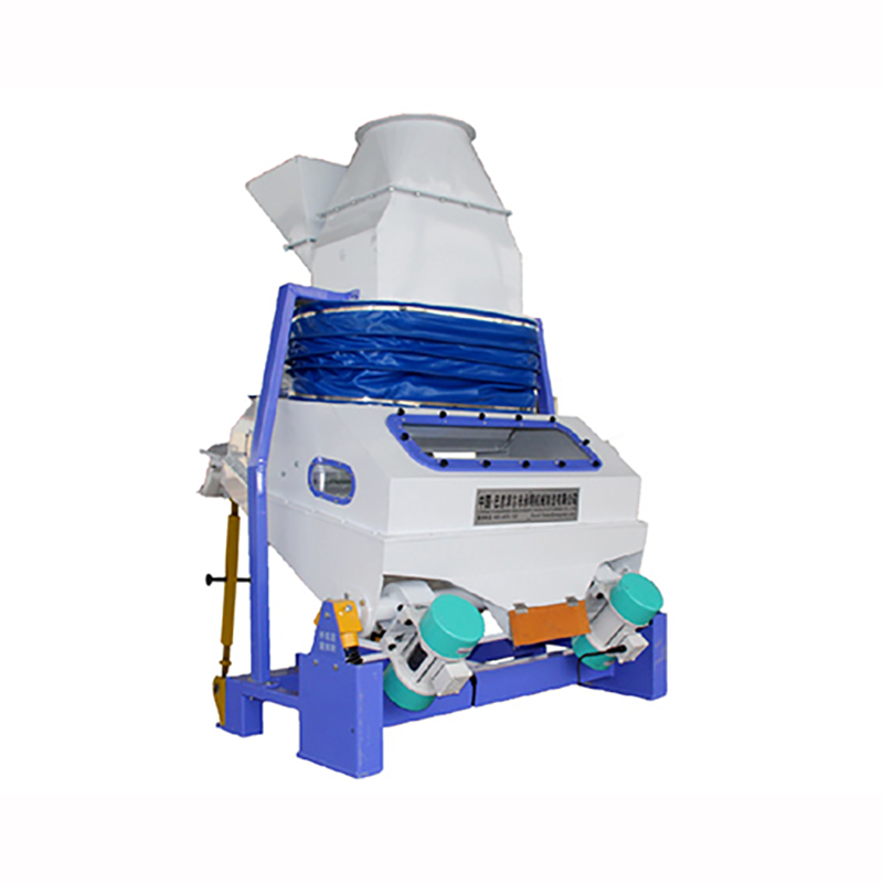 去石機主要用于去除農(nóng)產(chǎn)品中的石子、金屬、玻璃、并肩石及其他伴生雜質(zhì)等,該機可篩選葵花籽、籽仁類、打瓜籽、小麥、稻谷等多種農(nóng)作物,并擁有很高的除石效果。原料由投料口進(jìn)入設(shè)備篩體中,負(fù)壓式風(fēng)機產(chǎn)生的風(fēng)力作用于篩體,使篩體產(chǎn)生負(fù)壓環(huán)境,搭配傾斜的振動式魚鱗篩板,使物料與廢料相對而行:廢料向高層篩面攀爬經(jīng)由廢料口排出,物料向低層篩面運行進(jìn)入成品料口;針對不同物料,設(shè)備風(fēng)量和去石篩板的傾斜角度可進(jìn)行調(diào)節(jié),從而達(dá)到很好的清選效果。另外,由于該機有效的去除了石子、金屬等雜質(zhì),也保護了流水線中的下游設(shè)備,大大減少了設(shè)備磨損及故障率。